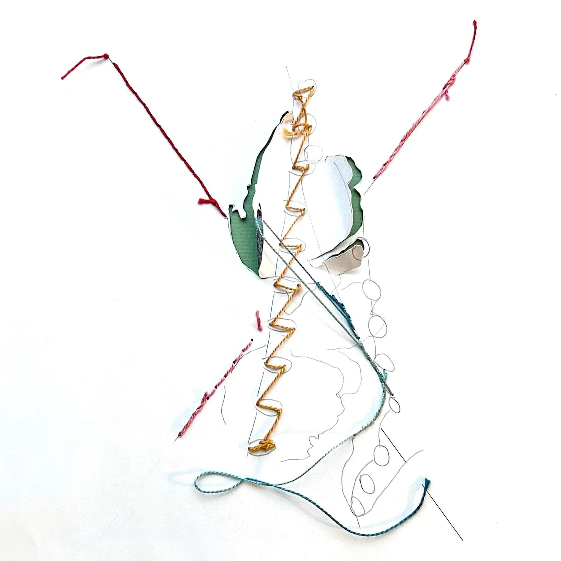 Pencil and stitch with cutwork on laser print (verso) 2023